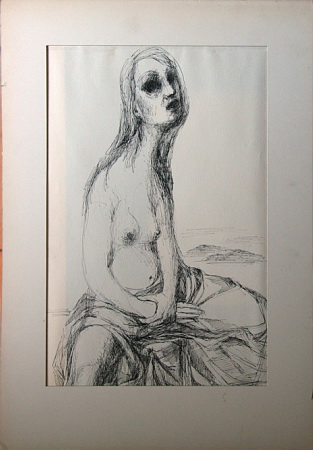 Pen & ink; image 11-1/4 x 17-1/4, in 16x24 mat. Mat smudged.