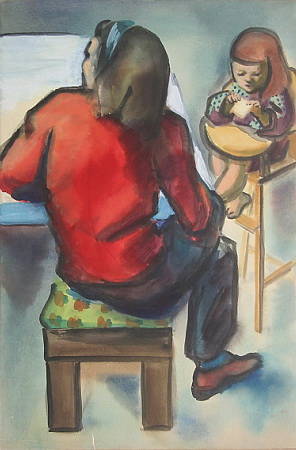 Watercolor, 14-1/2 x 22. Sister Kathryn and niece Dorothy, about 1944